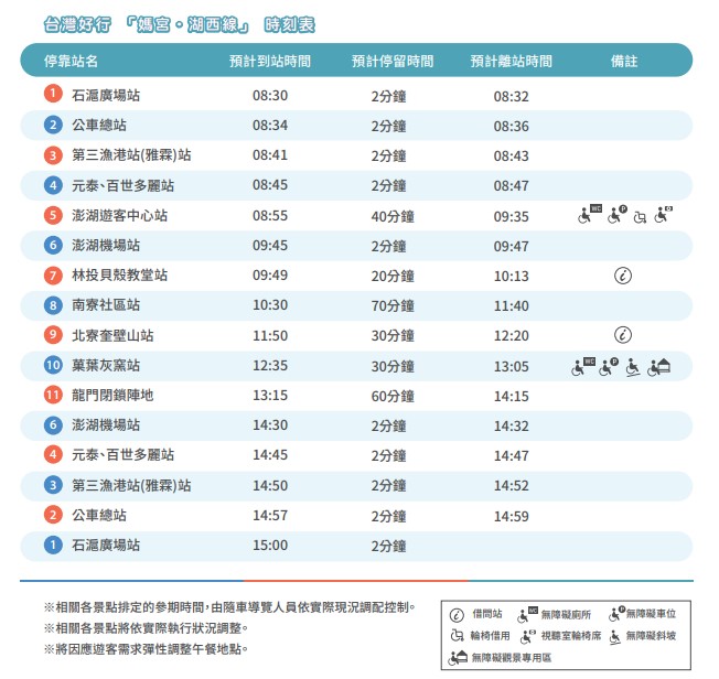 自109/10/26(一)起,澎湖好行路線更新如下圖,請搭乘的民眾注意搭乘時間heartheart
