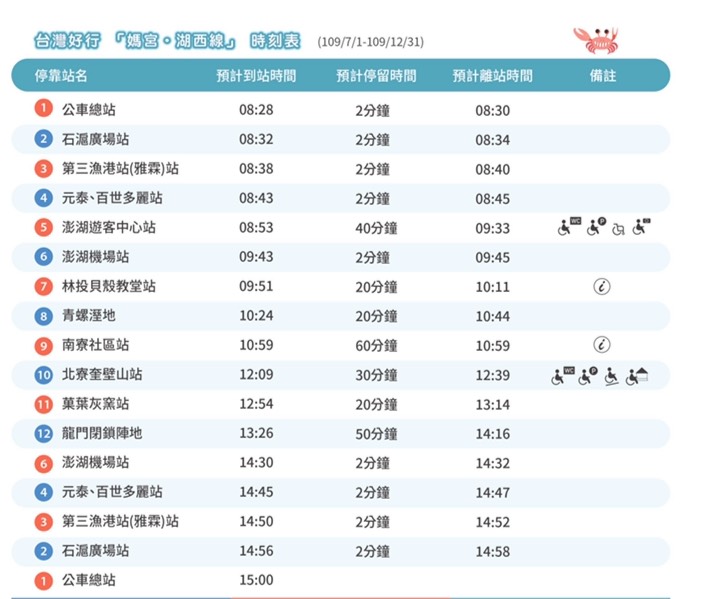 【公告】澎湖好行路線時刻表(借問站)
